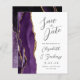 Le bord gauche de cet élégant mariage moderne, sauf la carte de date, est doté d'une bordure d'aquarelle violette ornée d'une parties scintillant en faux or. Le texte personnalisable combine écriture manuscrite grise au fusain, cuivre et polices italiques sur un arrière - plan blanc. L'envers est assorti d'une agate violette et dorée.
