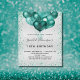 Pour un élégant 18ème anniversaire (ou tout âge). Un arrière - plan métallique à l'aspect faux argenté. Décoré de poussière turquoise de parties scintillant et de ballons. Personnalisez et ajoutez un nom, un âge et des détails de la fête. Le nom est écrit avec un script de style manuscrit