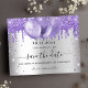 Un arrière - plan faux argenté décoré de parties scintillant et de ballons violet, couleur lavande. Personnalisez et ajoutez une date et un nom/âge. Le texte : Save the Date est écrit avec un grand script de style à la main tendance.