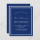 Une invitation moderne, élégante et raffinée. Un arrière - plan bleu marine décoré de cadres blancs. Personnalisez et ajoutez un nom et des détails. Texte blanc.
