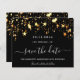 Une petite fille et tendance Enregistrer la carte Date pour une fête d'anniversaire de 40e (ou tout âge). Un arrière - plan noir décoré de faux étoiles dorées. Personnalisez et ajoutez une date et un nom/âge 40. Le texte : Save the Date est écrit avec un grand script de style à la main tendance.