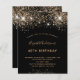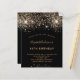 Une invitation moderne, élégante et glamour pour une fête d'anniversaire de 40ème (ou tout âge). Un arrière - plan noir décoré de fausse parties scintillant et brillant. Le nom est écrit avec un script de style à la main de couleur dorée moderne. Personnalisez et ajoutez les détails de votre fête.