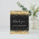Un carte de remerciements pour un 50ème anniversaire (ou tout âge). Couleur arrière - plan noire, décorée de parties scintillant faux or. Sur l'avant, le texte et le texte : Merci, votre texte. Retour : Personnalisez et ajoutez Votre note de remerciement et votre nom.