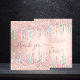 Une carte de remerciements féminine et élégante. Un or rose, rose faux métallique à l'apparence arrière - plan. Avec des gouttes d'or rose et de parties scintillant faux argent, la peinture goutte à goutte. Sur l'avant, grand rose noir couleur or couleur main lettré script et le texte : Merci. Retour : Personnalisez et ajoutez Votre note de remerciement et votre nom. Le nom est écrit avec un script de style moderne écrit à la main avec des swashes. Pour que les swashes ne suppriment que le nom de l'échantillon, laissez les espaces ou émoticônes devant et après le nom.