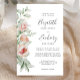 Le bord gauche de cette faire-part de mariage romantique est orné d'un bouquet de pêche et de fleurs rousses et de verdure. Le texte personnalisable combine écriture manuscrite, copperplate et polices italiques en gris fusain sur un arrière - plan blanc. L'envers présente une couleur unie de coordination.