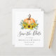 Ce design moderne a une ambiance automnale avec ses magnifiques tournesols aquarelle et ses feuilles d'eucalyptus autour d'un citrouille. **VEUILLEZ LIRE AVANT D'ACHETER** Notre petite gamme de papeterie économique mesure 4.5" x 5.6" et s'intègre dans une enveloppe A6, qui sont disponibles en toutes sortes de couleurs dans votre magasin de papeterie local ou vous pouvez ajouter des blancs à votre commande avant de passer votre commande. Chaque feuille est une invitation - aucune découpe n'est nécessaire. Le carton est d'un blanc éclatant avec une finition semi-brillante et un poids de 110lbs qui convient aux invitations. Nous NE VOUS conseillons PAS de choisir l'option papier satiné car il s'agit d'un papier de 80lb beaucoup plus mince, qui est plus proche des pages de magazines que des cartons. Si vous préférez une invitation classique de taille 5x7 imprimée sur un carton de 120lb avec une finition mate, vous pouvez transférer cette conception vers une carte plate en utilisant les options de conception de transfert. Les cartes plats ne sont pas dans la gamme de budget, mais vous avez un plus grand choix de tailles et de options de cartons et elles expédient avec des enveloppes. La forme et la taille qui conviennent le mieux à la conception apparaîtront dans les options de transfert de conception. Si vous modifiez la forme ou la taille ou choisissez un autre produit et que la conception est recadrée de quelque façon que ce soit ou ne s'affiche pas correctement sur la page, vous devrez utiliser le service de design en direct pour que quelqu'un vous adapte la mise en page, à moins que vous ne soyez à l'aise de le faire vous-même. Il n'y a pas de vérification manuelle ou d'intervention entre le placement de la commande et l'impression, donc ce que vous voyez à l'écran est ce qui vous sera imprimé et expédié. Dans cet esprit, veuillez également triple-vérifier pour toute erreur d'orthographe ou information incorrecte avant de passer votre commande.