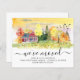 Moderne jolie aquarelle automne forêt pays cabine maison arbres montagnes Nous avons déménagé nouvelle maison changement d'adresse annonce de déménagement