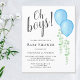 L'Invitation Baby shower du jumeau de ce couple économique est décorée de ballons bleu aquarelle et d'eucalyptus vert et dit "Oh les garçons !" Facile à personnaliser. Utilisez l'outil de conception pour modifier la taille, le style ou la couleur du texte. Parce que nous créons notre oeuvre, vous ne trouverez pas cette image exacte d'autres designers. Aquarelle originale © Michele Davies.