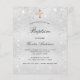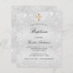 Une invitation au baptême moderne, élégante et minimaliste pour les garçons et les filles. Arrière - plan métallique argenté Faux décoré de poussière de parties scintillant imitation. Personnalisez et ajoutez un nom et des détails. Lettres de couleur noire.