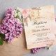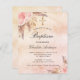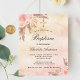 Un fond métallisé faux rustique rose doré, rose blush. Décoré de fleurs roses et dorées, de roses, d'herbe de pampa et d'une croix dorée. Personnalisez et ajoutez un nom et les détails.