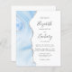 Le bord gauche de cette élégante faire-part de mariage moderne est orné d'une bordure d'aquarelle bleu pastel et recouverte d'une parties scintillant en faux argent. Le texte personnalisable combine écriture manuscrite, copperplate et polices italiques en gris fusain sur un arrière - plan blanc. L'envers offre de l'espace pour les détails mariages sur un arrière - plan blanc solide, ainsi qu'un code QR que les invités peuvent scanner pour visiter votre site Web et RSVP.