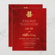 Cette version a un titre pour annoncer le mariage par les parents de la mariée et du marié. Cet élégant faire-part de mariage chinois est orné d'un double symbole de bonheur artistique en or sur un arrière - plan floral rouge rubis chatoyant. Noms de mariée et de mariée dans un élégant script manuscrit. Invitation à la cérémonie chinoise de faire-part de mariage ou de thé.