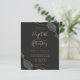 Une aquarelle noire agate design découpée avec parties scintillant faux or apparaît dans deux coins de cet élégant design. Personnalisez-le avec les noms du couple en écriture manuscrite de couleur or sur une grande carte grise. Ajoutez les détails du mariage en cuivre doré et en polices italiques sur un arrière - plan non noir. L'envers est assorti d'un design d'agate noir et or. REMARQUE : Les enveloppes ne sont pas automatiquement incluses dans ces invitations budgétaires, alors n'oubliez pas de choisir l'option "enveloppes blanches" !