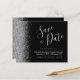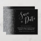 Cet élégant budget enregistrer la carte date comporte une bordure en faux argent parties scintillant. Le texte personnalisable combine écriture manuscrite gris argenté, copperplate et italique sur un arrière - plan noir. L'envers présente un design noir et argent assorti.