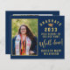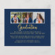 Budget Marine Blue Gold Bold Script 4 Photo Graduation Faire-part Card. Félicite le diplômé pour son succès bien mérité et le célèbre avec cette carte belle et abordable. Veuillez noter que les ENVELOPPES NE SONT PAS incluses. Les dimensions de cette carte sont de 4,5 po x 5,6 po et s'intègrent bien dans une enveloppe A6 de 4,75 po x 6,5 po si vous en avez. Vous pouvez également sélectionner une option d'enveloppe. Tous les textes sont pré-arrangés pour que vous personnalisiez facilement et rapidement avec vos propres détails.