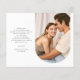 Ces belles invitations noires et blanches présentent deux de vos photos fiançailles préférées dans des cadres en arche bohème. N'importe quelle photo du couple fonctionnera, il n'a pas besoin d'être un photoshoot officiel fiançailles, il peut être un moment spécial ensemble, une photo "Je fais !", ou un simple câlin. Invitations minimalistes et économiques de mariage pour les mariages modernes de boho. La typographie est une combinaison de calligraphie romantique et de chapiteaux serif classiques. Sur le côté gauche, il y a une photo personnelle avec un cadre élégant en arc incurvé sur le dessus. Sur le côté droit de la carte, vos noms occupent le devant de la scène, séparés par une élégante maquette de script. Entre vos noms et le reste du texte, il y a des lignes horizontales épurées. Au-dessus des noms se trouve l'invitation à la cérémonie et en dessous les noms sont les détails de la cérémonie de base. Nous avons choisi d'afficher uniquement les détails de base de l'événement sur le devant afin qu'ils puissent être utilisés comme un rappel de conservation ou de sauvegarde de la date. Nous pensons que vos invités aimeront garder cette carte collée au réfrigérateur ou épinglée sur une planche d'affichage. Le reste des informations de l'événement est imprimé sur le dos, accompagné d'une deuxième photo de votre choix. La deuxième photo est à l'intérieur d'une arche à l'envers qui cravate l'ensemble du design. Nous avons inclus du texte modèle à l'arrière, que vous pouvez customiser pour répondre à vos besoins - il y a beaucoup d'espace pour ajouter plus d'informations, et ainsi il n'est pas nécessaire d'acheter une deuxième carte pour les détails! Invitations de mariage recto verso avec photos. Nous avons gardé tout le texte noir contre un arrière - plan blanc propre pour un thème classique de typographie noir et blanc. Modifier instantanément les modèles d'invitation ! La couleur, les polices, le placement, le positionnement, les couleurs et l'écriture arrière - plans sont entièrement personnalisables ! Pour customiser, cliquez sur "Personnaliser ce modèle" et modifiez le texte dans les zones modèles fournies. Pour une personnalisation plus avancée, faites défiler la page "Cliquez pour customiser plus loin" et utilisez l'outil de design intuitif de Zazzle pour rendre ces invitations uniques à vous ! Dans le cadre de la sélection du budget sur Zazzle, cette feuille n'est pas une taille invitation standard ou une qualité de papier. Si vous voulez ce design sur une carte d'invitation, vous pouvez le trouver dans notre magasin ou utiliser le Zazzle Make Machine pour le transférer sur le produit de votre choix. N'hésitez pas à m'envoyer un message pour toute question ou demande de commande personnalisée - Je serai heureux de vous aider!