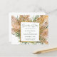 Serez-vous en train de tenir votre cérémonie de mariage dans le sud ou peut-être sur la plage ? Ensuite, ce budget coloré Save the Date card donne le ton avec un bouquet fleuri boho luxuriant de pampas herbe dans les tons or, rose rousse et vert. L'illustration de texte "Enregistrer la date" est définie dans une police de script charmant et tous les autres textes à l'avant et à l'arrière de la carte peuvent être facilement personnalisés par vous sur le modèle.
