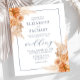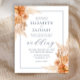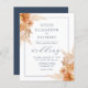 Les coins de cette faire-part de mariage boho romantique présentent des bouquets de fleurs séchés à l'aquarelle dans les tons de terre douce de l'orange brûlé, de la terre cuite, du beige et de l'ivoire. Le texte personnalisable combine des polices marine bleu serif, italique et script encadrées par un rectangle bleu marine sur un arrière - plan blanc. L'envers est un bleu marine massif coordonné.