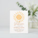 Notre petit rayon de soleil est en route ! Ce design boho et budget affiche une illustration de soleil aquarelle remplissant le dessus de la carte avec les détails de l'événement ci-dessous en typographie chic. Le nom de la mère à être, "soleil", la date, et les informations du registre sont tous écrits dans une couleur orange rouille avec le reste du texte dans un ton brun chaud. Le dos de la carte est orangé de la même couleur terre cuite avec un motif abstrait de touches de brosse bio. Ce design bohème aux couleurs joyeuses jaune et orange est parfait pour les baby showers garçons et filles. Invitations de douches pour bébés sur le thème du soleil, sans distinction de sexe, pour des événements de printemps ou d'été. Les thèmes correspondants incluent "voici le soleil", "vous êtes mon soleil", "rayon de soleil", et les baby showers arc-en-ciel. Ce modèle d'invitation est modifiable en ligne : cliquez sur "Personnalisez ce modèle" et tapez votre texte dans les cases fournies. Pour les modifications plus avancées, faites défiler pour "cliquer pour customiser plus loin" et accédez à l'outil de design de Zazzle pour choisir des couleurs personnalisées, modifier les polices, modifier le placement et plus encore ! Dans le cadre de la sélection du budget sur Zazzle, cette feuille n'est pas une taille invitation standard ou une qualité de papier. Si vous voulez ce design sur une carte d'invitation, vous pouvez le trouver dans notre magasin ou utiliser le Zazzle Make Machine pour le transférer sur le produit de votre choix. Veuillez noter que les cartes sont imprimées comme vous les voyez à l'écran lors de la commande, alors assurez-vous de vérifier deux fois les coquilles ! D'autres options d'invitation sont disponibles dans la collection sur cette page en dessous de l'image du produit. Parcourez mon magasin pour plus d'invitations pour les douches pour bébés.