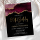 Cette invitation branchée à 50ème anniversaire présente une aquarelle d'une géode d'agate dans les tons bordeaux avec des reflets d'or. Les mots "50th Birthday" apparaissent dans la parties scintillant en faux or dans la police d'écriture moderne décorative. Customisez-le avec le nom de l'honoré dans le texte couleur or et les détails en blanc. La même image d'agate bordeaux apparaît à l'envers.