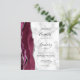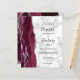Le bord gauche de cette élégante faire-part de mariage moderne est orné d'une bordure d'aquarelle bordeaux et d'une fausse parties scintillant argentée. Le texte personnalisable combine écriture manuscrite, copperplate et polices italiques en noir sur un arrière - plan gris et blanc en marbre. L'envers est assorti d'un design d'agate bordeaux et argenté.