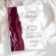 Le bord gauche de cette élégante faire-part de mariage moderne est orné d'une bordure d'aquarelle bordeaux et d'une fausse parties scintillant argentée. Le texte personnalisable combine écriture manuscrite, copperplate et polices italiques en noir sur un arrière - plan gris et blanc en marbre. L'envers est assorti d'un design d'agate bordeaux et argenté.