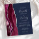 Le bord gauche de cette élégante faire-part de mariage moderne est orné d'une bordure d'aquarelle bordeaux et d'une fausse parties scintillant argentée. Le texte personnalisable combine écriture gris argenté, copperplate et polices italiques sur un arrière - plan bleu marine. L'envers est assorti d'un design d'agate bordeaux et argenté.