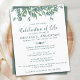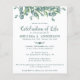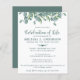 Funérailles Mémorial Rustique / Célébration De La Vie Invitation. Ces invitations funéraires sympathiques présentent une élégante et moderne végétation botanique d'eucalyptus sur un design moderne blanc et vert sage. Personnalisez cette célébration de l'invitation funéraire de la vie avec vos proches nom & dates, détails de l'événement. DROIT D'AUTEUR © 2021 Judy Burrows, Black Dog Art - Tous droits réservés. Célébration Budgétaire De La Vie Eucalyptus Verdure