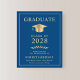 Élégante et abordable faire-part classique de graduation bleue avec une casquette de graduation d'or et une simple typographie moderne de l'or léger pour le nom du diplômé, année de classe, lycée, collège ou université, diplôme et majeur ou distinctions.