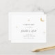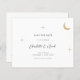Une faire-part de mariage céleste moderne minimaliste présente un design simple et élégant. Il comprend une lune de feuille d'or et des étoiles qui brillent doucement, dressé contre un arrière - plan propre. L'invitation utilise la typographie serif classique, qui ajoute une touche traditionnelle et formelle avec son style soigné et clair.