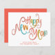 Un prix abordable SMALLER 4.5" x 5.6" carte plate pour vos voeux de nouvelle année sur un stock de carte SEMI GLOSS 110 lb brillant (semblable à l'épaisseur d'une carte postale) S'IL VOUS PLAÎT NOTE : L'enveloppe fournie avec cette carte est légèrement plus grande que la carte elle-même. Coral Turquoise Gold Parties scintillant Bonne année. Envoyez à vos amis et à votre famille des voeux brillants pour le Nouvel An avec ce design brillant avec le Joyeux Nouvel An dans un ensemble coloré de faux script de parties scintillant décoratif dans les tons turquoise, corail et or. Le reste du texte que vous pouvez facilement personnaliser avec votre salutation et les noms en bas sur le devant et sur le dos. L'arrière - plan de couleur corail sur le dos peut être changé en une autre couleur si vous le souhaitez via l'option customiser plus loin.