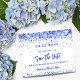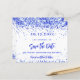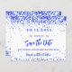 Un arrière - plan blanc chic décoré de confettis bleu roi. Personnalisez et ajoutez une date et un nom/âge. Le texte : Save the Date est écrit avec un grand script de style à la main tendance. Texte bleu royal. 1 feuille = 1 Enregistrer la date d'impression arête à arête.