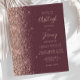 Le bord gauche de cette élégante faire-part de mariage moderne est orné d'une bordure rose en faux parties scintillant or. Le texte personnalisable combine écriture rose couleur or pâle, couleur blush, copperplate et polices italiques sur un arrière - plan bordeaux foncé. L'envers est assorti d'un design en or rose et bordeaux foncés.