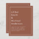 Élégante terre cuite noire moderne, terreuse, cinammon, toscane, sépia (noms de couleur) produit mariage monochrome conçu par LeahG®, fondateur du LowBudgetWeddingNetwork®. Les modèles textuels des deux côtés vous permettent de mettre tous vos codes QR de numérisation, RSVP, réception, hébergement, registre de cadeaux, et les détails de l'itinéraire. Ajoutez une photo, un logo ou une petite carte à la conception selon vos besoins à l'aide des outils d'édition de conception. Cela vous permet d'économiser de l'argent en évitant la nécessité d'acheter des boîtiers et des cartes de détail supplémentaires. 📌 Pin ce design à votre Pinterest mariage humod board afin que vous puissiez commencer votre planification de thème mariage à un bon début! Les modèles monochromes sont parfaits pour toute saison, automne, été, printemps et hiver. Vous pouvez également ajouter vos propres graphiques comme une superposition pour ajouter votre propre touche unique à votre thème. Zazzle dispose d'un service LIVE DESIGNER GRATUIT qui peut vous aider avec cela. Pour des idées voir mes collections mariages ici : www.giftsandinvitations.com. ⚠️ Notez que les postes budgétaires à bas prix peuvent être sur papier plus léger ou stock de carte. Pour un guide sur les types de papier et de cartes/prix, visitez ma page https://www.lowbudgetwedding.network/#faqs ⭐ Des directives de planification et des listes de contrôle pour les mariages gratuits sont également disponibles ici, ainsi qu'une mine d'informations et d'idées utiles. Si vous planifiez un mariage, j'espère que vous suivrez mes magasins, transmettez cette information à vos groupes de planification de mariages, et enregistrez cette page pour une utilisation future! ©️ LeahG®