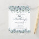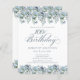 Des fleurs bleues et poussiéreuses créent des bordures haut et bas sur cette élégante invitation à l'anniversaire. La calligraphie de script classique apporte une touche de beauté. Cet article fait partie de la collection florale Dusty Blue.