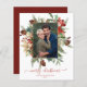 Carte de Noël à thème floral hivernal élégant et économique avec votre photo à l'intérieur de notre cadre en feuille d'or faux entouré de verdure de vacances hivernale rustique et élégante telle que poinsettia, houx et pin. Le dos est de couleur rouge hivernal, mais peut être facilement modifié. **Notre papier ÉCONOMIQUE est plus petit, plus léger et plus délicat, mais toujours beau ! N'oubliez pas les enveloppes !** Si vous avez besoin d'aide ou d'articles assortis, veuillez nous contacter à cedarandstring@gmail.com.