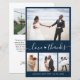 Budget "Amour et Remerciements" Lettre Manuscrite Cœur Élégant, Minimaliste Collage de Photos de Mariage Carte de Remerciement en bleu marine. Modèle de carte de mariage simple avec quatre (4) photos sur le devant et une photo au verso. Avec le texte "Amour et remerciements" dans une jolie police de caractères manuscrite avec des fioritures. Ajoutez votre nom et votre message de remerciement.