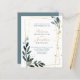 Élégant Faire-part de mariage économique dispose d'un design typographique élégant avec un magnifique feuillage verdoyant avec cadre doré dans un décor vert mer et gris. Le thème de couleur se transporte sur le dos de la carte avec du texte blanc. Ce papier à lettres mariage est prêt pour vous à customiser avec les détails de votre journée spéciale. Fait partie d'une collection qui ne cesse de croître.