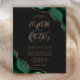 Une aquarelle couleur vert émeraude ornée d'une parties scintillant en faux or apparaît dans deux coins de cet élégant design. Personnalisez-le avec les noms du couple en écriture manuscrite de couleur or sur une grande carte grise. Ajoutez les détails du mariage en cuivre doré et en polices italiques sur un arrière - plan noir en ardoise. L'envers est assorti d'un design d'agate vert et or.