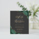 Une aquarelle couleur vert émeraude ornée d'une parties scintillant en faux or apparaît dans deux coins de cet élégant design. Personnalisez-le avec les noms du couple en écriture manuscrite de couleur or sur une grande carte grise. Ajoutez les détails du mariage en cuivre doré et en polices italiques sur un arrière - plan noir en ardoise. L'envers est assorti d'un design d'agate vert et or.