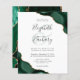 Une aquarelle couleur vert émeraude ornée d'une parties scintillant en faux or apparaît dans deux coins de cet élégant design. Personnalisez-le avec les noms du couple dans le script d'écriture manuscrite gris charbon sur une grande et pâle ampersande verte. Ajoutez les détails du mariage dans les polices cuivre et italique sur un arrière - plan blanc. L'envers est assorti d'un design d'agate vert et or.