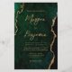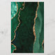 Cette élégante invitation de mariage présente une image arrière - plan d'agate d'aquarelle vert émeraude parée de parties scintillant en faux or. Le texte personnalisable combine écriture manuscrite moderne couleur or, cuivre et polices italiques. L'envers présente un design coordonné vert émeraude et or agate.