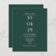 Un design de faire-part de mariage économique minimaliste moderne avec vos détails de date et de mariage spéciaux, dans une typographie classique et chic sur un arrière - plan vert émeraude. Conçu par Thisisnotme©