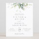 Belle faire-part de mariage avec aquarelle eucalyptus et feuilles d'or.