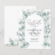 Ce mariage élégant à l'eucalyptus à petit prix, sauf l'invitation à la date, est parfait pour un mariage rustique dans le jardin. Ce design romantique présente des feuilles d'eucalyptus d'aquarelle dans une couronne d'arc moderne. Faites en sorte que la date soit sauvegardée par vous-même en incluant vos noms et tous les détails de votre mariage. Pour plus de personnalisation, cliquez sur le lien "customiser plus loin" et utilisez l'outil de conception avancée pour modifier ce modèle.