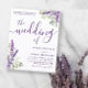 Il s'agit d'un "le mariage de" calligraphie moderne et élégant faire-part de mariage en violet sur un arrière - plan blanc avec l'ajout d'eucalyptus vert sauge et lavande violette. Facile de customiser le texte pour créer quelque chose de vraiment unique.