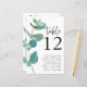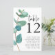 Budget Eucalyptus Mariages Nom d'hôte Table No. Un prix économique 5.5" x 8.5" Carte à plat sur un brillant stock de carte SEMI GLOSS 110 lb (semblable à l'épaisseur d'une carte postale). La table est dans un script de style manuscrit et votre numéro de table en dessous, et les feuilles d'eucalyptus bleu turquoise courant le long de la gauche. Personnalisez facilement le numéro et vos noms d'invités. La même conception est également au dos et le nombre et les noms changeront simultanément des deux côtés lorsque vous les mettez à jour.