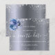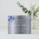 Une petite fille et tendance Enregistrer la carte Date pour une fête d'anniversaire de 50e (ou tout âge). Un arrière - plan à l'apparence métallique foncé et tendance, décoré de poussières de parties scintillant en faux argent et de fleurs bleues. Personnalisez et ajoutez une date et un nom/âge. Le texte : Save the Date est écrit avec un grand script de style à la main tendance.