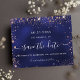 Une fille et tendance Enregistrer la carte Date pour une fête d'anniversaire de 21e (ou tout âge). Un arrière - plan bleu marine aux couleurs inégales. Décoré avec de la poussière de parties scintillant en faux or rose. Le texte : Save the Date est écrit avec un grand script de style à la main tendance.