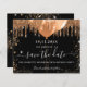 Une petite fille et tendance Enregistrer la carte Date pour une fête d'anniversaire de 18e (ou tout âge). Un arrière - plan noir classique décoré de parties scintillant et de ballons en faux or. Personnalisez et ajoutez une date et un nom/âge. Le texte : Save the Date est écrit avec un grand script de style à la main tendance.